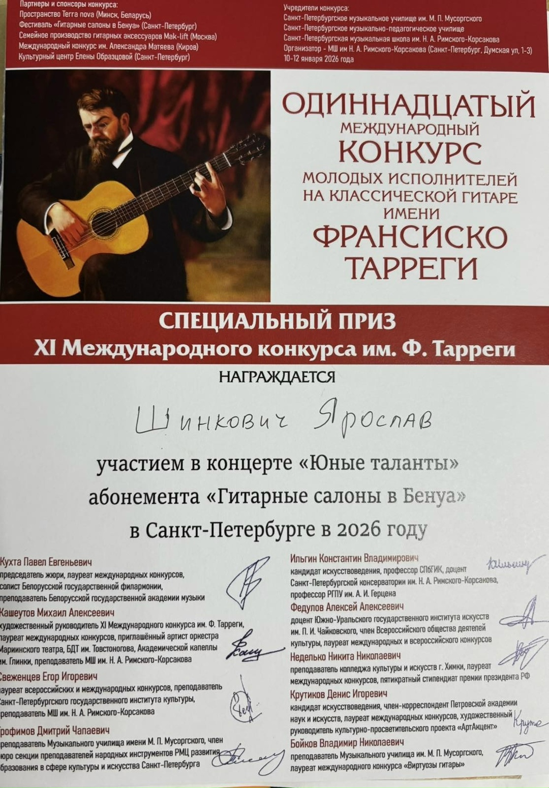 10-12 января в г. Санкт-Петербурге прошел XI Международный конкурс исполнителей на классической гитаре им. Ф. Тарреги.