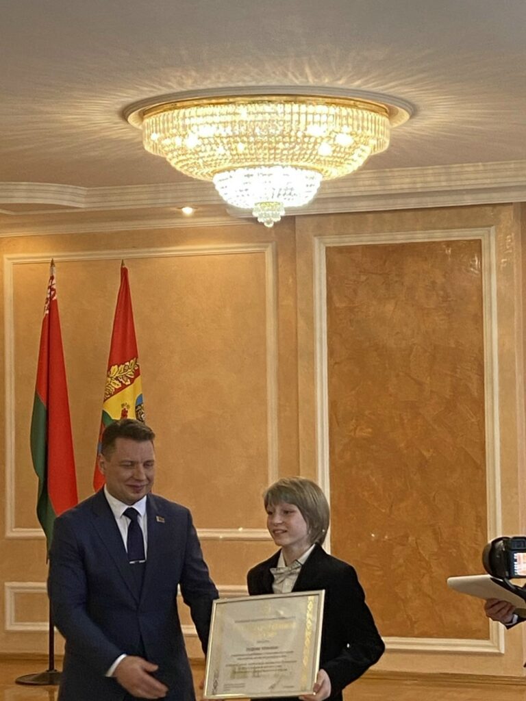 облисполкома Александр Николаевич Жигун вручил Благодарственные письма председателя Могилевского областного исполнительного комитета Анатолия Михайловича Исаченко юным дарованиям и творческим коллективам за высокий уровень мастерства и значительные достижения в сфере исполнительского искусства, популяризацию культуры Могилевской области.